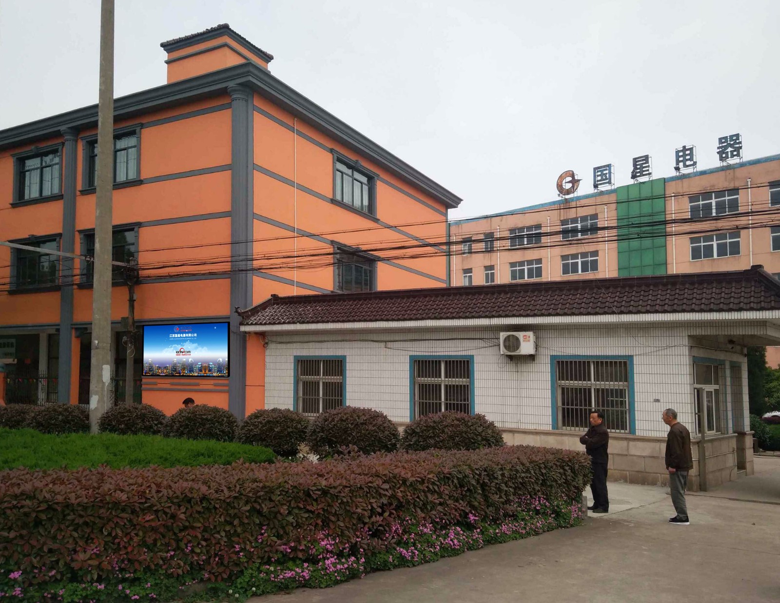 近日,由江蘇亮彩電子有限公司為國星電器承制的戶外P5和室內P4全彩LED顯示屏順利竣工,安裝調試完成并交付使用。